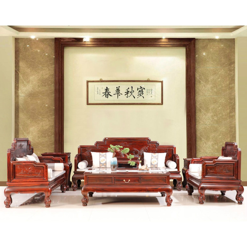 红木家具以其优质的材料和复杂的工艺而受到高度赞赏。东阳南马正洪工艺品厂的红木餐桌椅组合,完美地反映了古代家具的风格和精神。这些家具采用传统的榫卯结构,无需任何金属钉和胶水,展示出极致的工艺水平和环保理念 每一处雕刻都囊括了古典文化的精粹,如龙、凤、花卉等图案,这些都是幸福和繁荣的象征。
